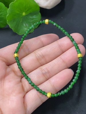 F35190196 Jadeite Bracelet Approx. 4.8mm Beads Non-Gold Setting Total Weight Approx. 7.58g