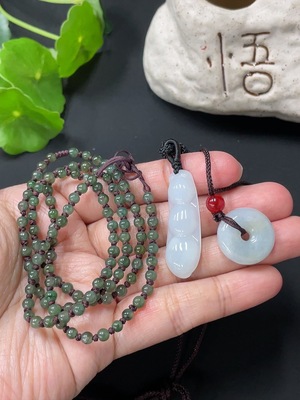F27069888 Jadeite pendant + bead chain, card 3.6mm approx, matching beads non-A