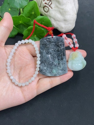 F27076014 Jadeite Bracelet + Pendant Sell as a Lot (Color origin undetermined)