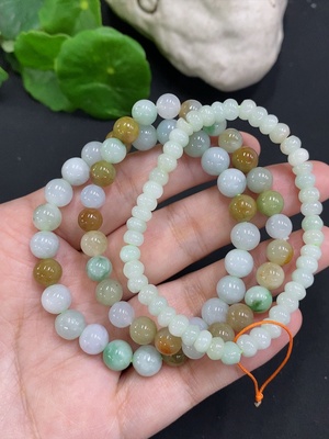 F34975539 Jadeite Beads Sell as a Lot Non-Gold Color Origin of Yellow Part Undetermined