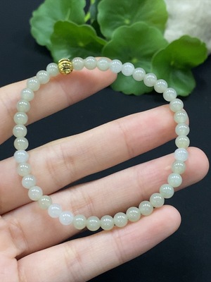 F35190196 Jadeite Bracelet Approx. 4.8mm Beads Non-Gold Setting Total Weight Approx. 7.58g