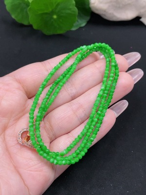 F34068446 Jadeite Bead Necklace Approx. 2.6mm Non-Gold Inlaid Total Weight Approx. 7.46g