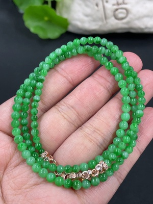 F37446734 Jadeite Bead Necklace Approx. 3.9mm Total Weight Approx. 13.85g Non-Gold Clasp