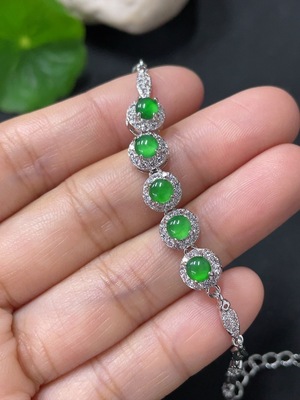 F28305615 Jadeite Inlaid Bracelet Approximately 7.5/5.6mm Non-Gold Marked in Red Remaining 18k String Undetectable