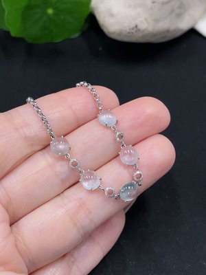 F36245888 Jadeite Inlaid Bracelet Au70% with Diamond Accents Total Weight Approx. 2.78g