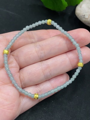 F36222314 Jadeite Bracelet Approx. 2.7mm Beads Total Weight Approx. 3.3g (Non-Gold Inlaid)