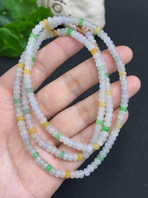 F17904560 Jadeite Beads Necklace approx. 5.2mm (Yellow Beads Non-A) Total Weight 9.564g