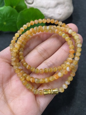 F33942888 Jadeite Bead Necklace Approx. 4mm Non-Gold Total Weight Approx. 16.9g Yellow Part Color Origin Undetermined