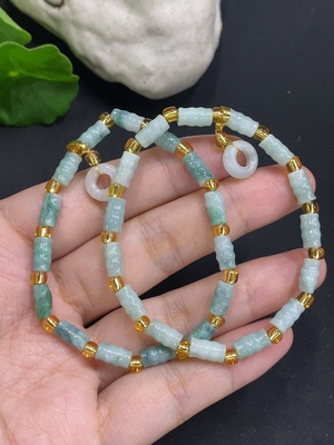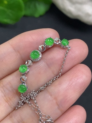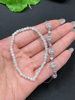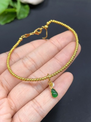 F24800022 Jadeite Inlaid Bracelet Total Weight Approx. 2.6g Small Steel Beads Gold Content 99% Other Parts Non-Gold Inlaid