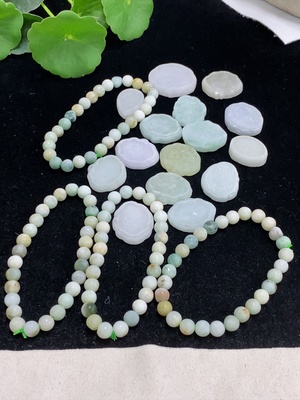 F35199123 Jadeite Bracelet + Beaded Bracelet Non-Gold Sell as a Lot
