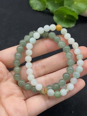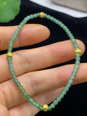 F30544517 Jadeite Bracelet Approx. 6.8mm Beads with 99% Gold Small Beads Non-Grade A Total Weight Approx. 11.44g