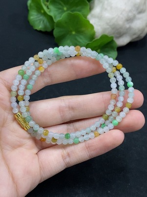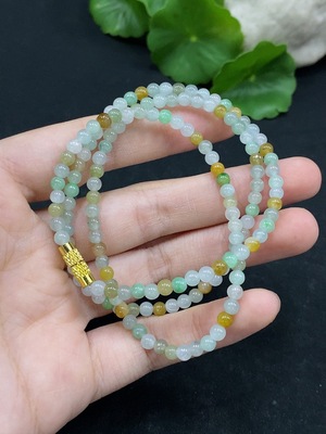 F33868153 Jadeite Beaded Necklace Approx. 3.5mm Total Weight Approx. 13.2g Non-gold Setting Color Origin Undetermined