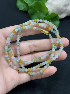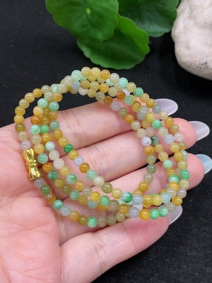 F33898784 Jadeite Bead Necklace approx. 3.7mm total weight approx. 16g (non-gold inlaid) (yellow color origin undetermined)