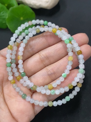F33868161 Jadeite Beaded Necklace Approx. 3.9mm Total Weight Approx. 14.65g Non-gold Setting Color Origin Undetermined