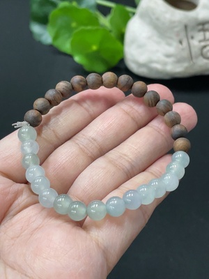 F34979064 Jadeite and Wood Bead Bracelet, approx. 6.7mm, total weight about 9g, with non-A grade beads