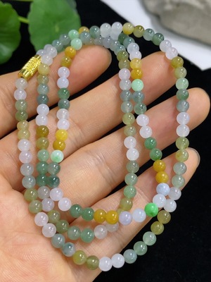 F40709011 Jadeite Beads Strand Approx. 4.5mm Total Weight About 7.95g Non-Gold