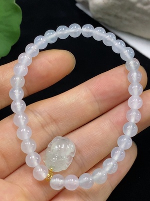 F31600445 Jadeite Bracelet with 71% Gold Content, Total Weight Approximately 9.8g, Bead Size Around 5.4mm