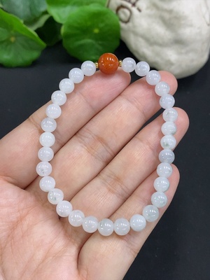 F28304826 Jadeite Inlaid Bracelet, Approx. 7.3mm Beads, 18K Red Marked, AU99% for Rest, Total Weight Approx. 5.47g
