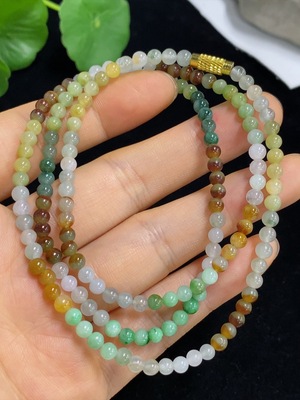 F37348323 Jadeite Bead Necklace Non-Gold Card 3.5mm Approx. Total Weight About 14.67g