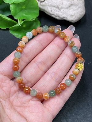 F34020554 Jadeite Beads Non-Gold Yellow Red Color Origin Undetermined Total Weight Approx. 12.68g Size About 6.3mm