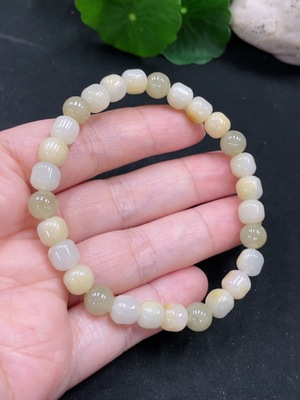 F36254797 Jadeite Bracelet, Approx. 8.4mm, Yellow Beads Non-Grade A, Total Weight Approx. 16.5g