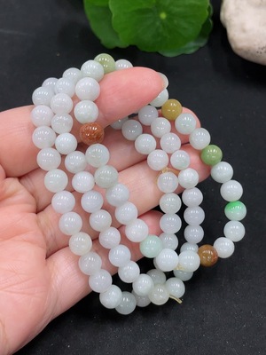F36340316 Jadeite bracelet, total weight approx. 9.57g, with non-A beads, impurities, approx. 5.4mm in diameter