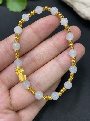 F27177693 Jadeite Inlaid Bracelet Approx. 5.5mm AU99% Total Weight Approx. 4.61g