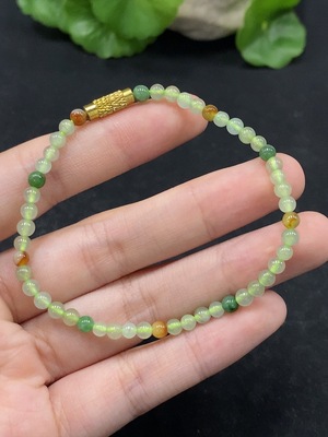 F34029378 Jadeite Bracelet Approx. 4mm Beads Total Weight Approx. 4.83g Non-Gold Yellow Part Color Origin Undetermined