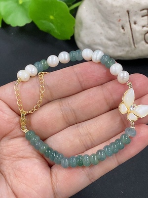 F38518436 Jadeite Beads Bracelet Approx. 5.8mm Total Weight Approx. 11.1g With Pearl Non-Gold Inlaid