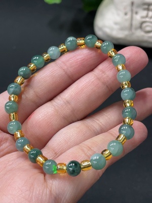 F22489466 Jadeite Bead Bracelet Non-gold Inlaid