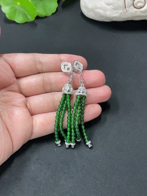 F20263137 Jadeite Bead Inlaid Earrings Pair, Approx. 3mm, Non-Gold Setting, Total Weight 10.075g