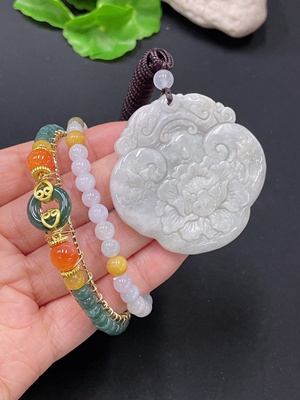 F35159107 Jadeite Bracelet + Pendant Sell as a Lot Non-A Bead Non-Gold