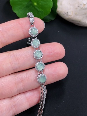 F38516509 Jadeite Cabochon Inlay Bracelet Non-Gold Inlay Total Weight Approx. 11.5g