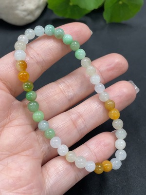F36300536 Jadeite Bracelet Approx. 6mm Beads Total Weight About 14.6g (Non-gold Inlaid)