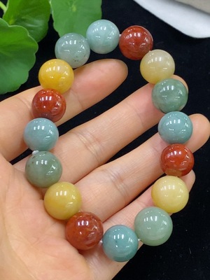 F35178255 Jadeite Bracelet Approx. 13.2mm Beads Total Weight About 55.19g Red Yellow Beads Not Grade A With Impurities