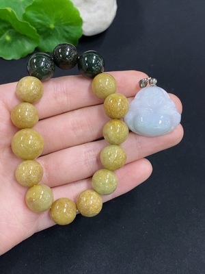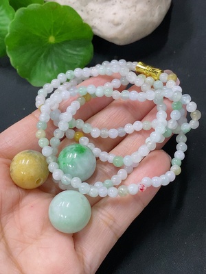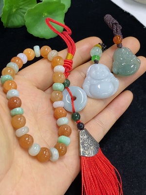 F38531710 Jadeite Pendant with Bead Chain Sell as a Lot (Red and Yellow Beads Non-A)