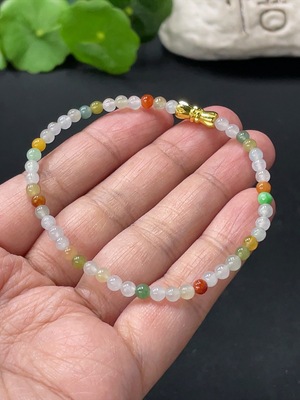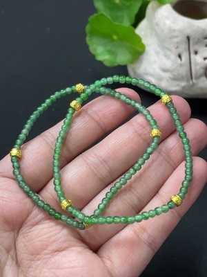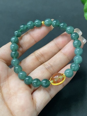 F20226606 Jadeite Bracelet with approximately 7mm beads (small round beads Au99%, non-gold for the rest, non-A grade accessory stones) Total weight: 16.008g