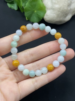 F37345436 Jadeite Bracelet Approx. 7.2mm Yellow Beads Non-A with Impurities Total Weight Approx. 16.32g