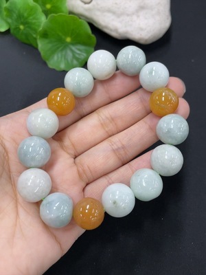 F38535493 Jadeite Bracelet Approx. 13.8mm Total Weight Approx. 62.43g Yellow Beads Non-A