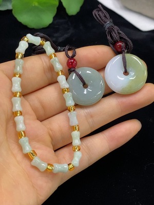 F34948855 Jadeite Bracelet/Pendant Sell as a Lot Yellow Part Color Origin Undetermined With Non-Grade A Beads