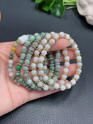 F34954462 Jadeite Beads Bracelet Approx. 6mm Total Weight About 12.52g Non-Gold