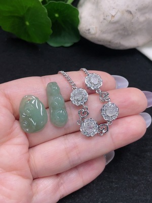 F33917229 Jadeite Pendant + Bracelet Sell as a Lot (Non-Gold Inlaid)