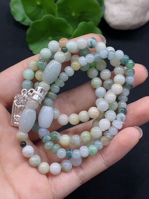 F29409495 Jadeite Bead Necklace Approx. 6mm Total Weight About 43.77g Non-Gold Inlaid
