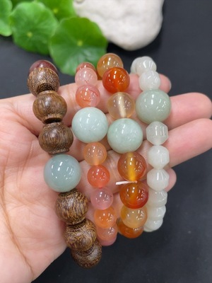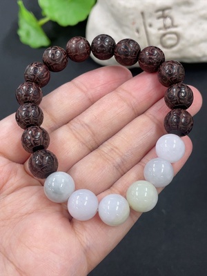 F38517735 Jadeite and Wood Bead Bracelet, Approx. 10.3mm, Total Weight Approx. 19.29g