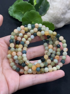 F35138684 Jadeite Bead Bracelet with Other Mineral Components and Colored Polishing Powder, Total Weight Approximately 54.57g, Size About 12.7mm