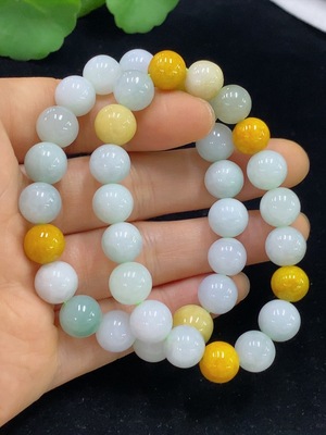 F20207388 Jadeite Bracelet Size 11.5/5mm approx Yellow Bead Color Origin Undetermined