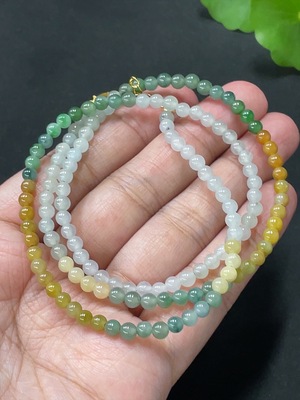 F17918910 Jadeite Beaded Necklace Approx. 3mm Non-Gold-Inlaid Total Weight 7.568g