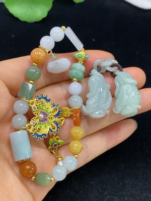 F35125332 Jadeite Pendant + Bracelet Sell as a Lot Non-gold Inlay Yellow Beads Non-Jadeite Matching Chain Non-Jadeite