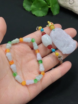 F25900075 Jadeite Bracelet/Pendant Non-Gold Setting with Non-A Grade Beads