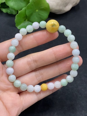 F21345149 Jadeite Bracelet Approx. 3.7mm Beads Yellow Beads Color Origin Undetermined Total Weight 4.870g